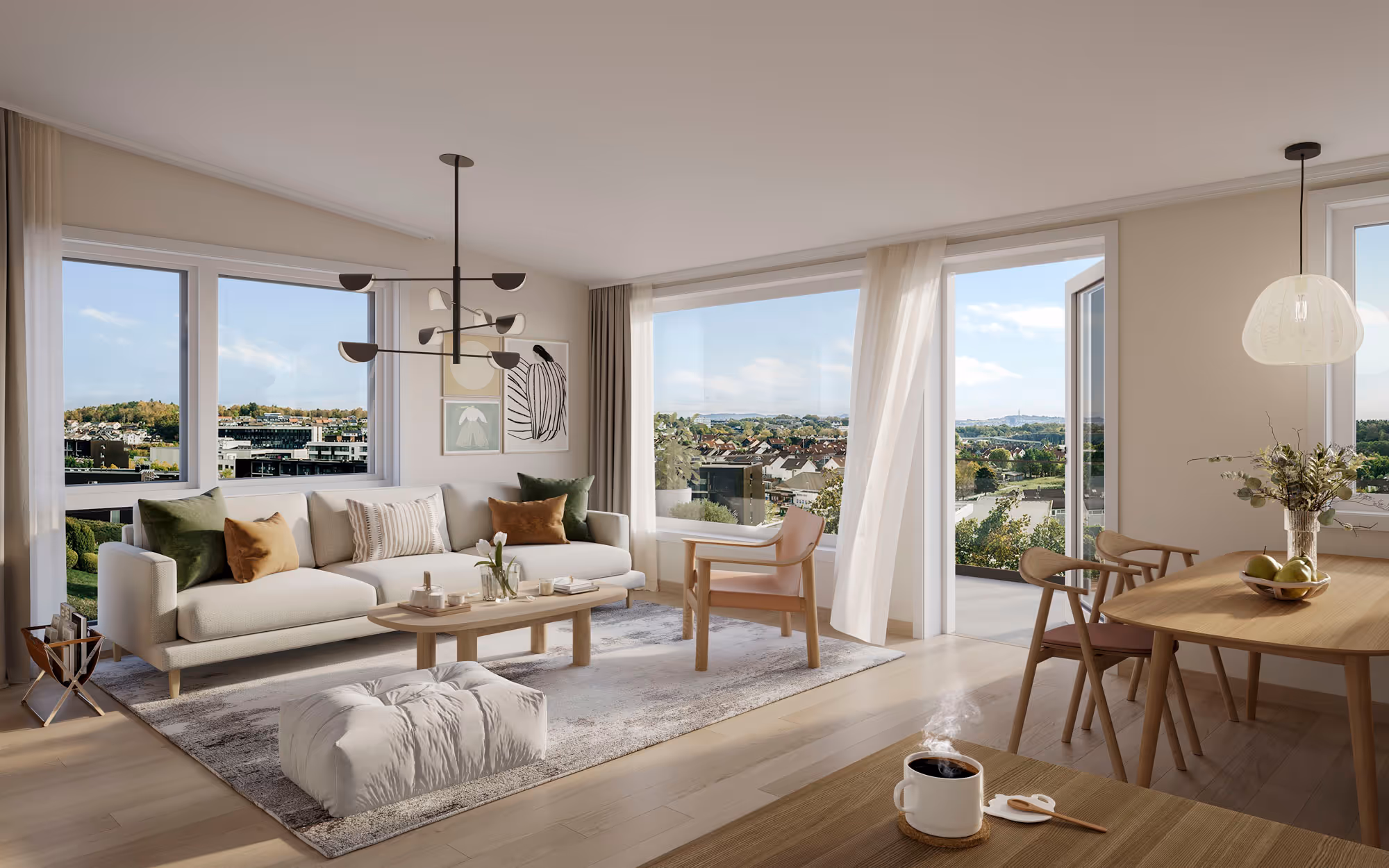 Boligene er bygget med fokus på høy standard og kvalitet: fra de stilrene leilighetene til de familievennlige rekkehusene. Her får du et hjem som er lett å trives i. Og like viktig: et nabolag som løfter hverdagen. Med bilfrietun, grønne fellesområder og tilrettelagte lekeplasser er det lagt til rette for et trygt og sosialt bomiljø, der man møtes, leker og lever.